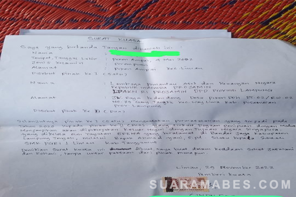 Karena merasa dirugikan (CF) mendatangi Kantor sekretariat DPK lembaga pemantau aset dan keuangan negara (LPAKNRI) Projamin Lampung dan menyerahkan permasalahannya dan sekaligus memberikan kuasa penuh kepada lembaga LPAKNRI projamin Lampung agar dapat membantu permasalahan.
