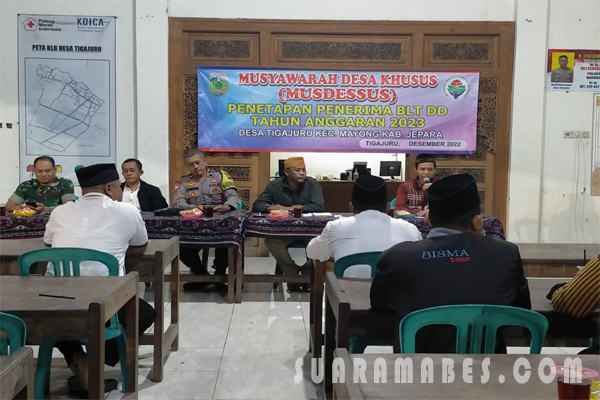 MahesaMediaCenter, Jepara – Pemerintah Desa Tiga Juru, Kecamatan Mayong, Kabupaten Jepara. Pada Kamis, (29/12/2022) malam, telah menggelar Musyawarah Desa Khusus (Mudessus) membahas Penetapan Penerimaan BLT-DD Tahun Anggaran 2023.