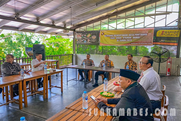 MahesaMediaCenter, Pontianak – Jelang malam tahun baru, Polresta Pontianak gelar Jum’at Curhat, dengan tema “Bersama menciptakan Kota Pontianak yang aman, nyaman dan Damai di Tahun 2023”. Kegiatan yang dilaksanakan Jumat (30/12/ 2022) Pukul 09.00 Wib bertempat di Cafe Warkop Upgrade Jl. Suprapto Kec. Pontianak Selatan.