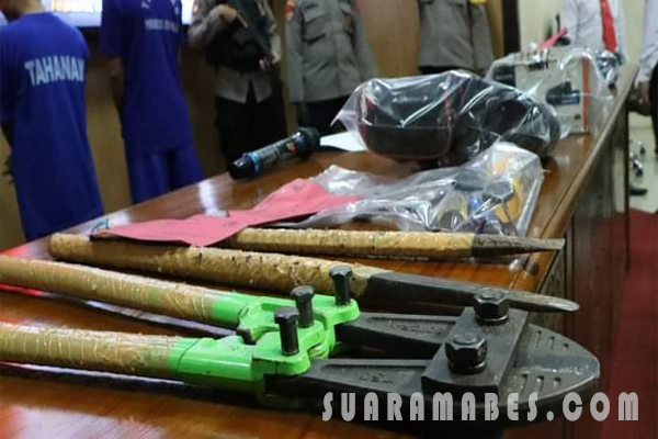 Lanjut Kapolres, modus tersangka melakukan pencurian dengan cara kedua tersangka masuk ke dalam toko yang sebelumnya merusak gembok menggunakan gunting besi besar dan satu tersangka lain menunggu di mobil sambil mengawasi keadaan sekitar.