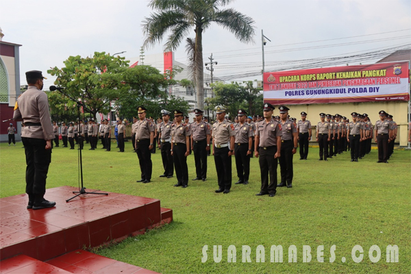 “Selamat kepada para personil Polres Gunungkidul yang naik pangkat semoga dengan pangkat yang baru dapat menjadi lebih dewasa, bertanggungjawab dan berprestasi kedepannya”