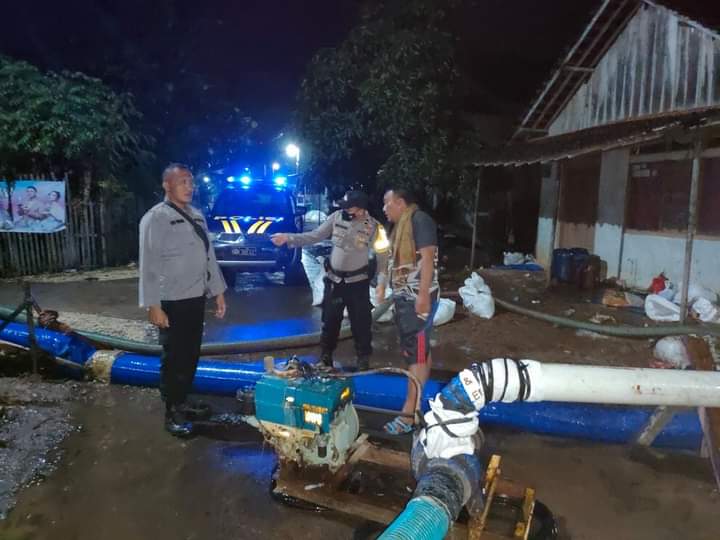 Patroli malam personil Polsek Welahan melakukan pengecekan lokasi banjir di wilayahnya, pada kesempatan itu juga Bripka Priyo Nugroho menghimbau warga agar tetap waspada terhadap ancaman di musim penghujan.