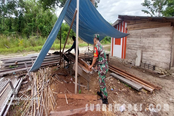 MahesaMediaCenter, Kwatisore ~ Dalam memantau perkembangan di daerah binaan Babinsa Koramil 1705-03/kwatisore Sertu Aswidi membantu Masyarakat dalam perehapan rumah atau tempat tinggal Bapak Albert di Kampung Wami, Distirk Yaur Kab. Nabire.