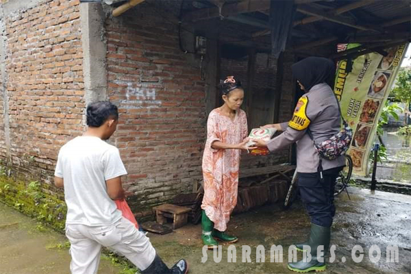 MahesaMediaCenter, Jepara – Bhabinkamtibmas Polsek Welahan jajaran Polres Jepara Polda Jateng Briptu Fetty bersama Babinsa dan pemdes Welahan, bergerak untuk menyalurkan bantuan sosial (bansos) bagi warga di wilayah binaannya yang terdampak banjir.