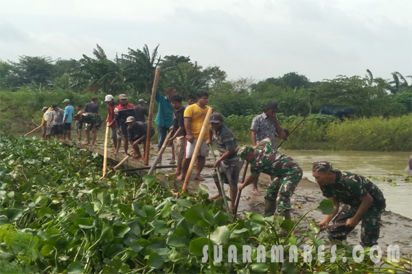 Warga Dorang dan Anggota Babinsa Koramil 05/Mayong, Bersih bersih Tanaman Liar Enceng Gondok