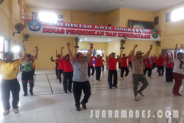 MahesaMediaCenter, Singkawang – Dandim 1202/Skw di wakili Pasipers kodim 1202/Skw kapten Inf Witana melaksanakan OLahraga Bersama Forkopimda Singkawang di aula dinas pendidikan dan kebudayaan jalan Alianyang Pasiran, kec Singkawang Barat, Jum at (06/01/23).