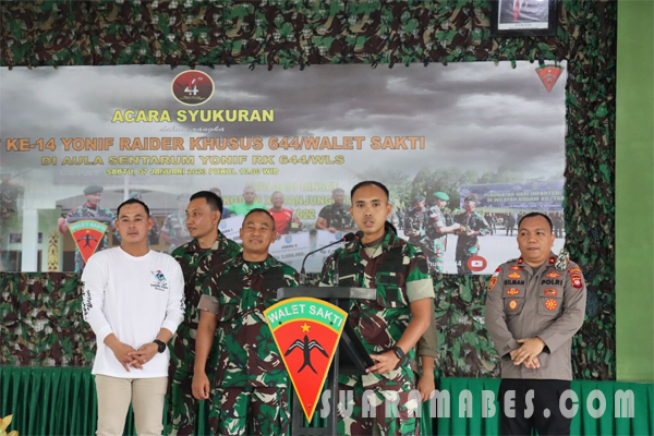 Danyonif RK 644/Wls Letkol Inf. Benu Supriyantoko menyampaikan bahwa syukuran kali ini dilakukan dalam suasana kebersamaan, kegiatan ini merupakan acara puncak HUT Ke-14 Yonif RK 644/Wls.