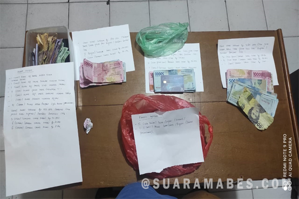 Dari lokasi penangkapan, Polisi mengamankan barang bukti Uang tunai Rp. 5.451.000, 6 (enam) buah nota/kupon (berisi penasangan), 12 (dua belas) buah nota/kupon (kosong), 3 (tiga) buah pena merk snowman v-1,1 (satu) buah HP merk nokia warna hitam, 3 (tiga) buah HP, 1 (satu) buah ATM dan 1 (satu) buah pisau Chater warna hijau.(TN)