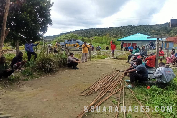 MahesaMediaCenter, Papua Barat – Kepolisian Sektor anggi – Kapolsek anggi, IPDA DWI MARYANTO,S.H mendengarkan keluh kesah warga masyarakat di kampung Sutebey, Distrik Anggi, Kabupaten Pegunungan Arfak. Jumat, 13/01/2023.