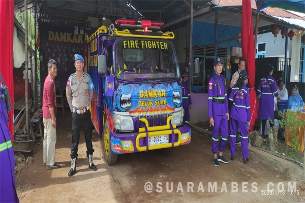 Sambung kepala desa karimunting Iskandar,Spd, saya mengucapkan terimakasih kepada pengurus dan anggota Damkar teluk suak yang telah siap mengabdi kan diri sebagai pemadam kebakaran, tetap jaga kekompakan dan mematuhi komando dari ketua regu saat melaksanakan pemadaman kebakaran, pungkas nya.