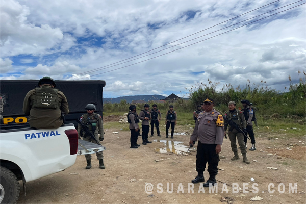 MahesaMediaCenter, Dogiyai – Lakukan Patroli Cipta Kondisi Polres Dogiyai yang dipimpin langsung Waka Polres Dogiyai Akp Michael Luther Ayomi S.Sos di dampingi Plh Kabag Ops Akp Aksan Husain S.H, Pasca Penangkapan Gubernur Papua beberapa hari lalu di Jayapura (16//1/2023)