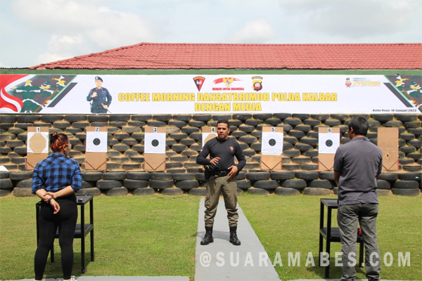 MahesaMediaCenter, Pontianak Kalbar – Brimob Polda Kalbar mengundang sejumlah wartawan Coffee Morning dan Dilanjutkan latihan menembak dilapangan tembak Amdjiatak, Satbrimob Polda Kalbar, Rabu (18/1/2023).