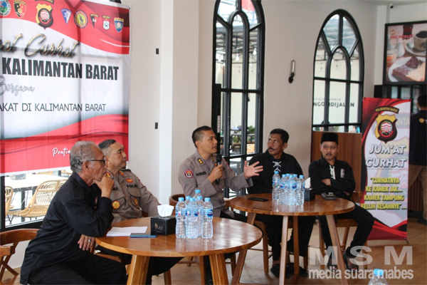 MahesaMediaCenter, Pontianak Kalbar – Kepolisian Daerah Kalimantan Barat membuka ruang kepada masyarakat untuk menyampaikan aspirasi dan keluhan kepada Polri melalui program Jum’at Curhat Polda Kalbar.