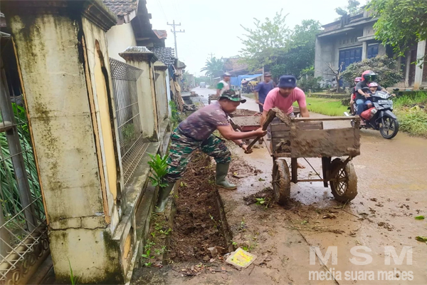 “Apabila selokan saluran air tersebut mengalami pendangkalan, maka akan menyebabkan air meluap dan menyebabkan banjir ke jalan ketika hujan turun,” kata Babinsa Serma Kuswono.