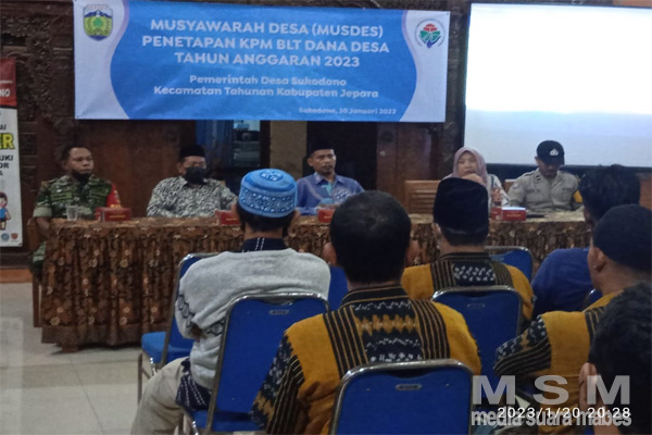 MahesaMediaCenter, Jepara – Pemerintah Desa Sukodono, Kecamatan Tahunan, Kabupaten Jepara, telah menggelar Musyawarah Desa (Mudes) membahas terkait dengan Penetapan Penerimaan BLT-DD Tahun Anggaran 2023. Yang dilaksanakan di Balai Desa Sukodono. Rabu, (25/1/2023) malam.