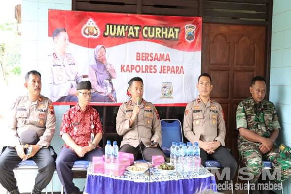 Kapolres Jepara menyampaikan bahwa Jumat Curhat merupakan kegiatan kepolisian yang setiap hari jumat kita keliling di tempat yang sudah di jadwalkan untuk silaturahmi dan komunikasi bersama warga dengan tempat berbeda.