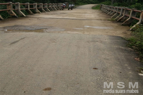 MahesaMediaCenter, Labusel – Pembangunan inprastruktur perbaikan jalan pengaspalan Hotmix kelas lll persis di titi di atas titi tersebut di cor beton bukan hotmix di dusun pintu padang desa parimburan kecamatan sungai kanan.