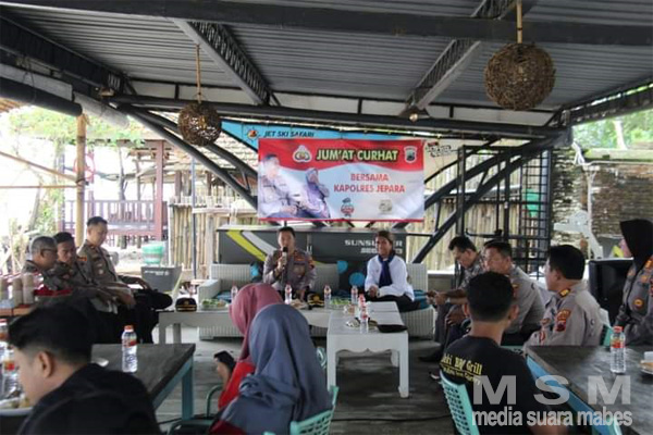 MahesaMediaCenter, Jepara – Gelaran Jumat Curhat Kapolres Jepara AKBP Warsono, SH., SIK., MH, didampingi Wakapolres Kompol Berry, ST., SIK., MH, dan pejabat utama Polres Jepara melakukan dialog bersama para pengusaha perhotelan dan cafe di Jepara.