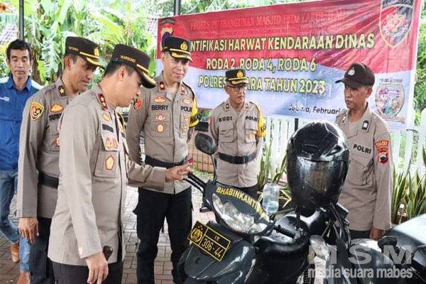 MahesaMediaCenter, Jepara – Guna menunjang kinerja kepolisian dalam melaksanakan tugas di lapangan, Kapolres Jepara AKBP Warsono, SH., SIK., MH., dengan di dampingi Wakapolres Jepara Kompol Berry, ST., SIK., MH dan PJU Polres Jepara pimpin langsung pengecekan Ranmor Dinas di Halaman Belakang Mapolres Jepara, Selasa (07/02/2023).