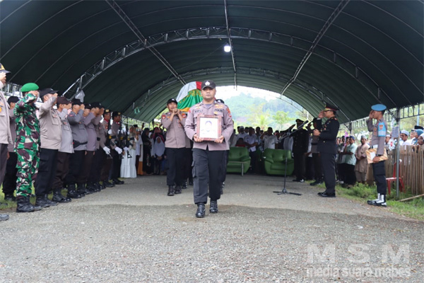 “Atas nama pimpinan Polri menyampaikan terimakasih dan penghargaan atas pengabdian dan dedikasi Almarhum semasa hidupnya menjalankan tugas sebagai Anggota Polri, semoga amal ibadah almarhum mendapat balasan dari Allah SWT” tambah Kapolres saat beri sambutan.