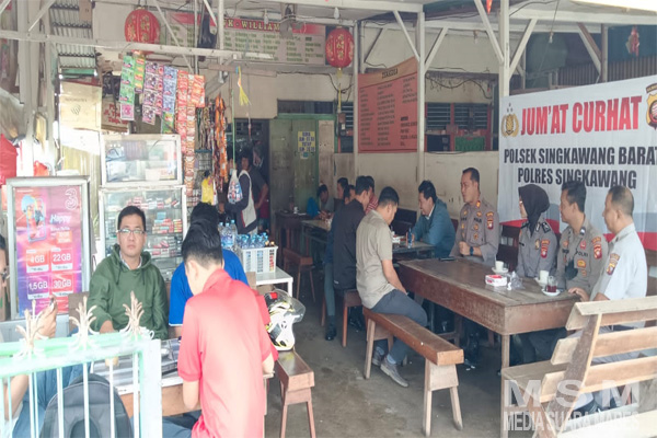 MahesaMediaCenter, Singkawang Kalbar – Polres Singkawang Polsek Singkawang Barat dalam rangka pendekatan Polri dan masyarakat hari Jum’at , tanggal 10 Februari 2023 pukul 08.30 wib s/d 10.00 wib bertempat di Warkop William di Jalan Alianyang Kel. Melayu Kec. Singkawang Barat telah dilaksanakan kegiatan Jum’at Curhat Polsek Singkawang Barat Polres Singkawang.