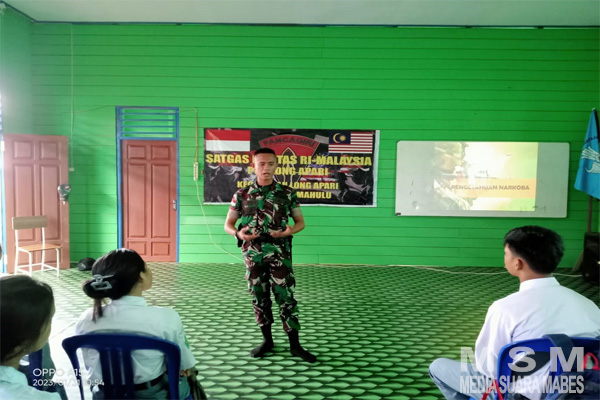 MahesaMediaCenter, Kaltim – Peduli terhadap generasi penerus bangsa, Anggota Satgas Pamtas Yonarmed 5 Pancagiri melaksanakan kegiatan penyuluhan di daerah perbatasan, kepada kepada Pelajar SMAN 1 Long Apari mengenai bahaya penyalahgunaan narkoba dan seks bebas.