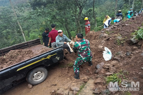Dikatakan Babinsa Koptu Nono bahwa dengan adanya kejadian tanah longsor ini tidak ada korban jiwa hanya saja menutup akses jalan bagi masyarakat.