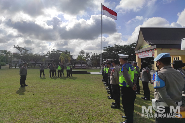 MahesaMediaCenter, Singkawang Kalbar – Karendal Ops Kompol Andri Syahroni, S.I.P.,M.M dalam Operasi Kepolisian Kewilayahan Keselamatan Kapuas 2023, memberikan arahan kepada Personel yang terlibat dalam Operasi di halaman Mapolres Singkawang, Sabtu (18/2/2023).