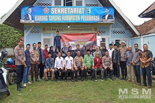 MahesaMediaCenter, Pesawaran Lampung — Kapolres Pesawaran AKBP Pratomo Widodo, S.I.K., M.Si (Han) didampingi Kasat Binmas Polres Pesawaran AKP Matera, Kasat Intel Polres Pesawaran Iptu Dartiyo Santiko, Kasi Humas Kompol Darwin, Kasi Propam Iptu Yurisman melaksanakan giat Jumat Curhat Bersama para pemuda Karang Taruna Kab. Pesawaran, Ikatan Mahasiswa Muhammadiyah (IMM) Kab. Pesawaran, serta para pemuda Kab. Pesawaran yang bertempat di Kantor Sekertariat Karang Taruna Kab. Pesawaran, Desa Sukaraja Kec. Gedong Tataan, Jumat 17/02/23.
