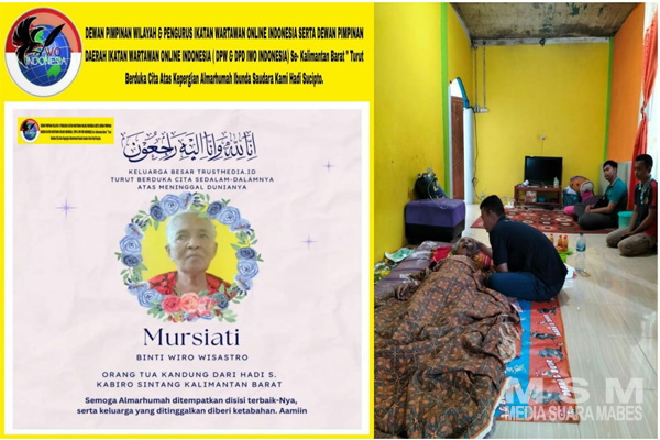 MahesaMediaCenter, Pontianak Kalimantan Barat – Innalillahi Wainna Ilaihi Rojiun. Telah berpulang ke Rahmatullahi,Ibu pMursiati Binti Wiro Wisastro, Ibunda tercinta nya Saudara kami Hadi Sucipto, selaku Ketua Dewan Ikatan Wartawan Online Indonesia ( IWO indonesia) Kabupaten Sintang.