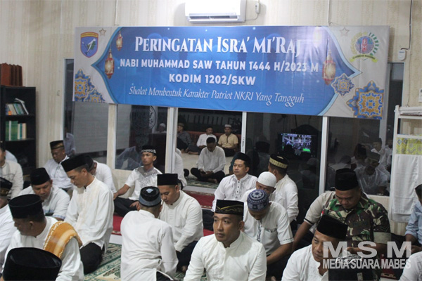 MahesaMediaCenter, Singkawang – Keluarga besar Kodim 1202/Skw menggelar peringatan Isra’ Mi’raj Nabi Muhammad SAW 1444 H/2023 Masehi,kegiatan bertemakan ‘Sholat Membentuk Karakter Patriot NKRI Yang Tangguh”.
