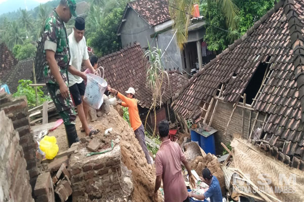 Selain melakukan peninjauan Babinsa Serda Wahyudi dan Bhabinkamtibmas Bripka Priyo juga melihat kondisi kerusakan dapur rumah Maskuri dan Ibu Ilmiati akibat longsor tersebut.