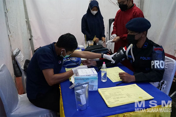 Sebelum para personel Satbrimob Polda Kalbar bergeser menuju ke lokasi pelaksanaan kegiatan donor darah terlebih dahulu mereka dicek satu persatu kesehatan mereka oleh Kesjas Satbrimob Polda Kalbar. Hal ini bertujuan untuk mengecek kesiapan tubuh personel ketika mereka ingin mendonorkan darah mereka.