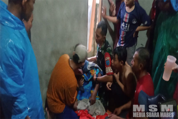 Bapak Bahrum dapat di temukan dalam kondisi terapung berpegangan di atas kayu di lokasi bekas kolam yg sudah meluap banjir dikarenakan hujan yg deras dari pagi sampai siang Babinsa dan warga setempat berenang untuk upaya penyelamatan dan kemudian di bawa langsung kerumahnya.
