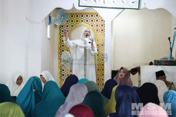 MahesaMediaCenter, Pesisir Barat – Ketua Umum Badan Kontak Majelis Ta’lim (BKMT) Kabupaten Pesisir Barat, Hj. Septi Istiqlal, menghadiri kegiatan Pengajian Rutin Bulanan BKMT dengan penceramah Ustadz Bahirman Hamka dan pemberian santunan kepada anak yatim bertempat di Masjid Nurul Iman Pemangku 1 Pekon Rata Agung, Kecamatan Lemong, Kabupaten Pesisir Barat. Kegiatan ini rutin dilaksanakan setiap bulannya oleh BKMT Pesisir Barat dengan cara berkeliling ke Masjid-Masjid diwilayah Kabupaten Pesisir Barat yang bertujuan untuk bersilaturahmi sekaligus meningkatkan keimanan, ketaqwaan dan kesadaran beragama dalam aspek wawasan dan pengetahuan dalam Agama Islam kepada lapisan masyarakat di wilayah Kabupaten Pesisir Barat.Selasa (07/03/2023).
