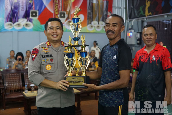 Usai memberikan sanbutan,N.B.Darma menyerahkan piala kepada pemenang tournamen,untuk kategori ganda Putra dimenangkan oleh pasangan dari Polresta Pontianak