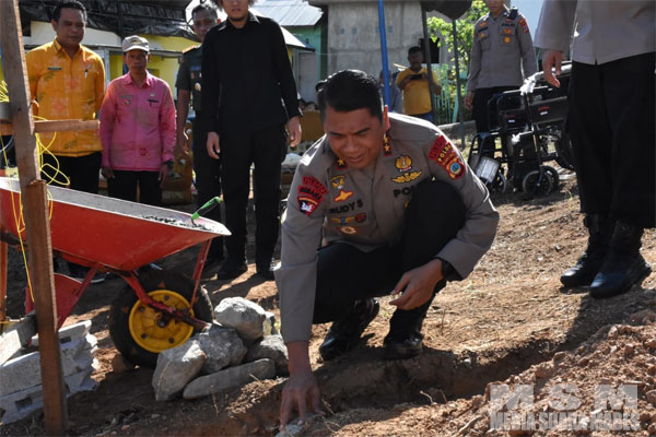 MahesaMediaCenter, Palu – Kapolda Sulawesi Tengah Irjen Pol. Drs. Rudy Sufahriadi melakukan peletakan batu pertama bedah rumah dalam tajuk Polda Sulawesi Tengah Peduli, berlangsung di Jalan Bukit Aladin Kelurahan Talise Kecamatan Mantikolore, Palu, Kamis 9 Maret 2023