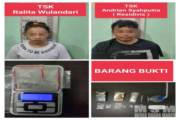 Dari lokasi penggerebegan berhasil diciduk dua orang diduga pengedar Sabu sabu, yakni AS (28), warga Tegal Rejo Lingkungan I, Kel. Pekan Gebang, Kec. Gebang dan satu orang wanita RW ( 23 ) warga Desa Teluk Bakung, Kecamatan Tanjung Pura. Dari tangan tersangka ditemukan sejumlah paket kecil sabu dalam bungkusan plastik bening dan timbangan elektronik.