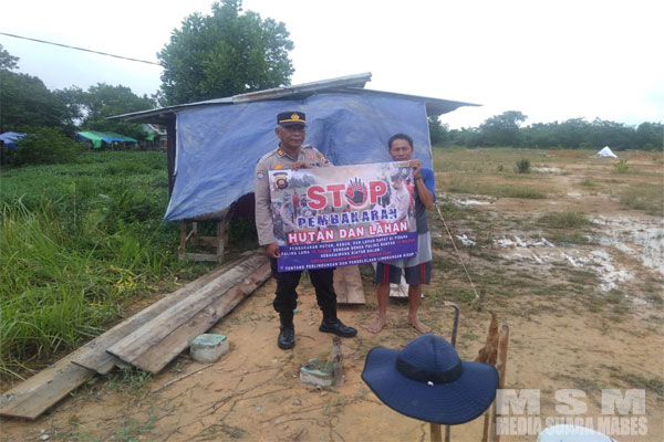 Dalam kesempatan ini juga kami memberikan himbauan menggunakan Banner serta penyampaian Maklumat, larangan terkait sanksi hukum tentang kebakaran hutan dan lahan, ungkapnya.