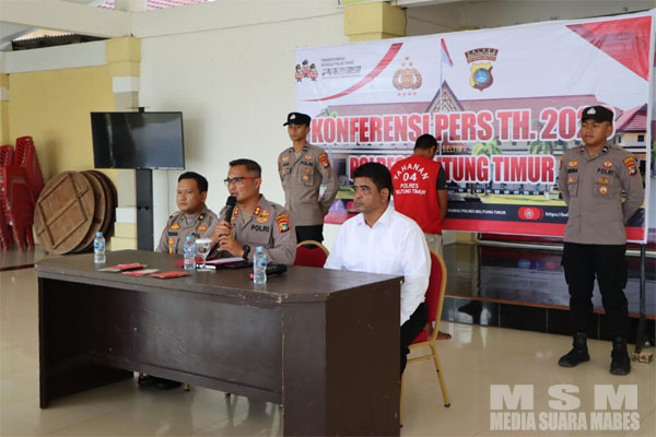 MahesaMediaCenter, Beltim – Polres Belitung Timur melaksanakan Press Release hasil Operasi Antik Menumbing 2023 di Joglo Patriatama Polres Belitung Timur. Senin (13/03/2023).
