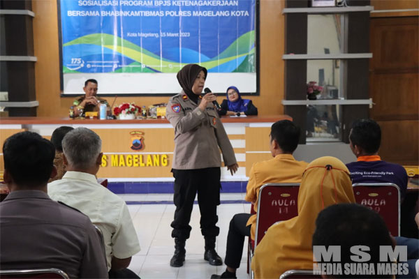 Pada kesempatan ini juga dari Satbinmas Polres Magelang Kota bersinergi dengan pihak BPJS Ketenagakerjaan dalam mensosialisasikan manfaat program jaminan sosial bagi karyawan maupun pekerja informal. Yang disampaikan oleh Tim Sosialisasi dari Badan Penyelenggara Jaminan Sosial (BPJS) Ketenagakerjaan Kota Magelang.