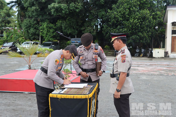 Iptu Muhammad Mudasir, S.Sos Jabatan Lama PS. Kapolsek Yaur Jabatan Baru PS. Kasi Propam Polres Nabire kepada Iptu Jumadil jabatan lama PS. Kasubbag Kerma Bag Ops Polres Nabire Jabatan Baru PS. Kapolsek Yaur Polres Nabire.