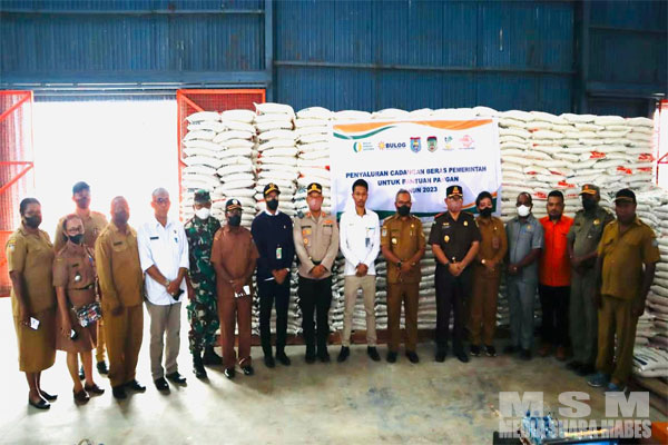 MahesaMediaCenter, Yapen – Kapolres Kepulauan Kepulauan Yapen AKBP Herzoni Saragih menghadiri acara launching Penyerahan Bantuan Pangan Pemerintah sebagai upaya untuk menangani kerawanan pangan, kemiskinan, stunting, gizi buruk, keadaan darurat dan melindungi produsen serta konsumen dan pengendalian dampak inflasi, Melalui Perum Bulog Kabupaten Kepulauan Yapen. bertempat di Halaman Gudang Perum Bulog Serui. Serui (3/4/2023).