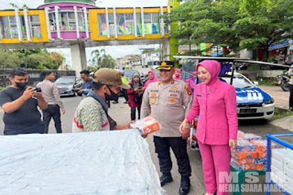 MahesaMediaCenter, Prabumulih (Sumsel) – Polres Prabumulih membagikan takjil dan nasi kotak jelang berbuka puasa (Iftar), di kawasan Pasar Traditional Modern (PTM) Kota Prabumulih, Senin (03/04/2023)