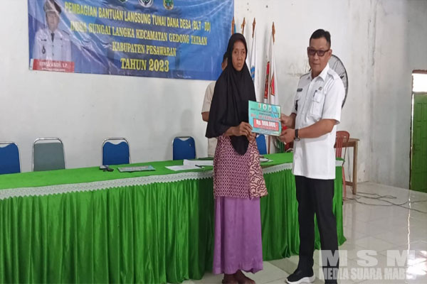 MahesaMediaCenter, Pesawaran – Pemdes Sungai Langka kecamatan Gedong Tataan Telah Menyalurkan Bantuan Langsung Tunai BLT DD Tahap 1 ( januari/februari/maret ) tahun 2023 bertempat di balai desa Sungai Langka, Rabu 05/04/2023.
