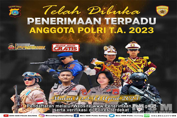 “Polri kembali membuka penerimaan terpadu untuk menjadi anggota Polri Tahun Anggaran 2023” ungkapnya di Palu,