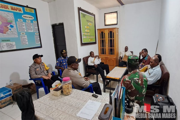 MahesaMediaCenter, Bomomani – Polsek Mapia Lakukan Program Jumat Curhat dengan mendengar langsung masukan, kritikan dan saran dari masyarakat yang kegiatan tersebut bertempat di Polsek Mapia kampung Bomomani Distrik Mapia”Jumat 07 April 2023