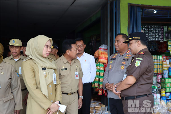 MahesaMediaCenter, Demak – Menjelang Hari Raya Idul Fitri 1444 H, Bupati Demak Eisti’anah bersama Kapolres Demak AKBP Budi Adhy Buono mengecek ketersedian beras di gudang Bulog Demak serta memantau harga kebutuhan pokok masyarakat (Kepokmas) di Pasar Karanganyar, Senin (10/4/2023).
