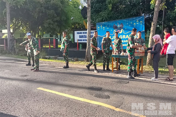 Kodim 0424/Tanggamus Bagikan Takjil Bebruka Puasa Gratis Kepada Warga Yang Melintas di Depan Makodim 0424/Tanggamus