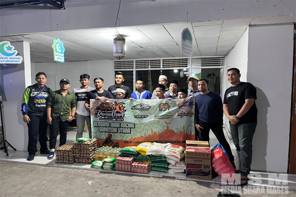 Selain silaturahmi antar sesama Pembalap Motor, mereka juga menggelar bakti sosial dengan menyisir pusat kota medan guna berbagi nasi kotak untuk santap sahur.